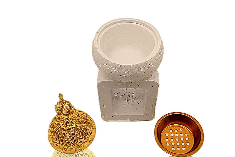 - Üst kısmındaki metal hazne, esans yağı veya balmumu eritmek için uygundur.