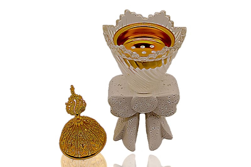 Papyon Detaylı Cam Üstlü Metal Buhurdanlık