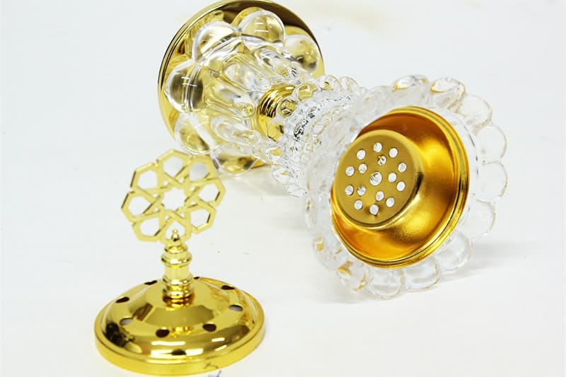 Buhurdanlık Cam Altın Dekorlu Kapak ve Ayak