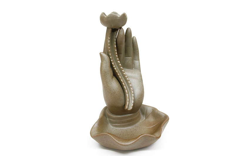Seramik Lotus Çiçeği Tutan El Geri Akışlı Tütsülük