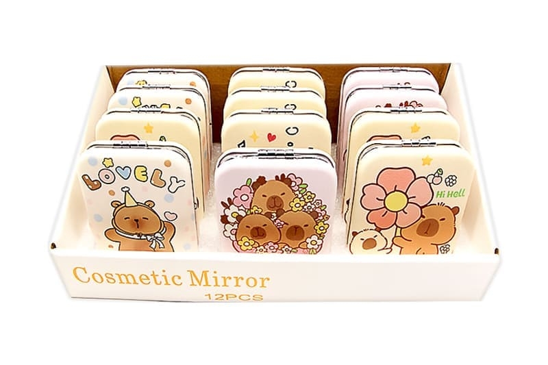Cappy Bara PU Deri Mini Makyaj Aynası(12’li Set – 4 Model)Model Seçenekleri: 4 farklı sevimli capybara deseni