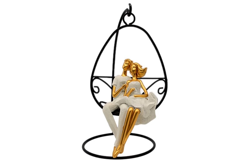 - Romantik Salıncakta Çift Figürü, aşk ve huzuru zarif bir tasarımla birleştiren dekoratif bir objedir.
