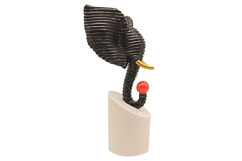 - Siyah gövde ve renkli top detayıyla dikkat çeken figür, mekanlara dinamik bir enerji katar.