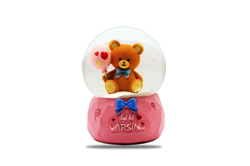 Balonlu Ayıcık Figürlü Işıklı İyi ki Varsın Kar Küresi