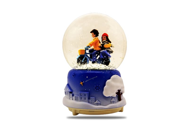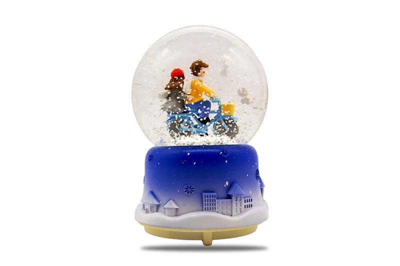 ● Bisiklet üzerinde çift figürlü dekoratif kar küresi
