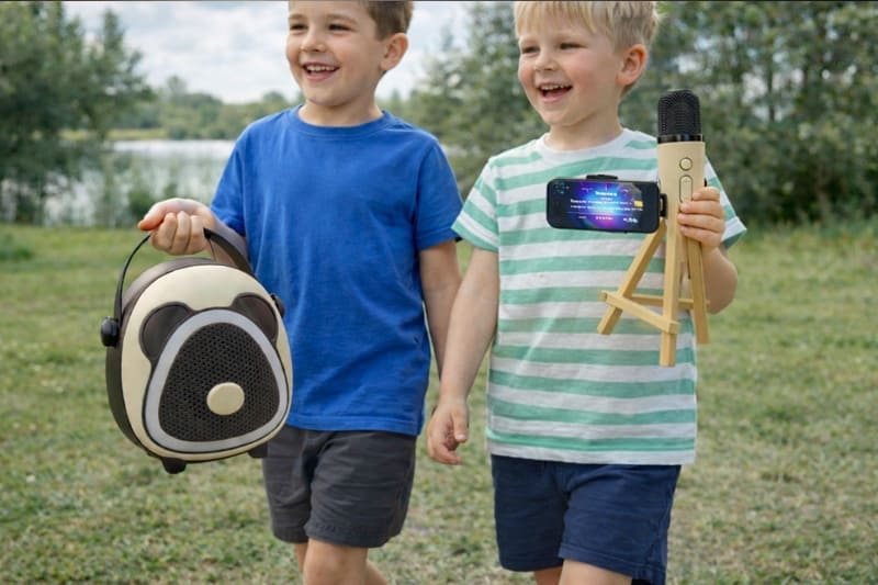 Çocuklara özel olarak tasarlanan bu retro görünümlü karaoke hoparlörü; eğlence, müzik ve yaratıcılığı bir araya getirir. Kompakt ve hafif yapısı sayesinde çocukların rahatça taşıyabileceği şekilde tasarlanmıştır. Renkli LED ışıklandırması, çoklu ses efektleri ve tripod uyumu ile evde sahne deneyimi sunar.