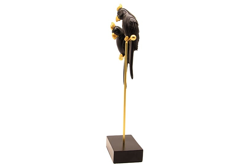 • Şık kaideli tasarımıyla öne çıkan Parrot on Wire figürü, iki papağanın zarif duruşunu modern bir yorumla sunar.