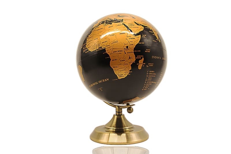 • Detaylı dünya haritası baskısı ve parlak yüzeyli küre yapısı.